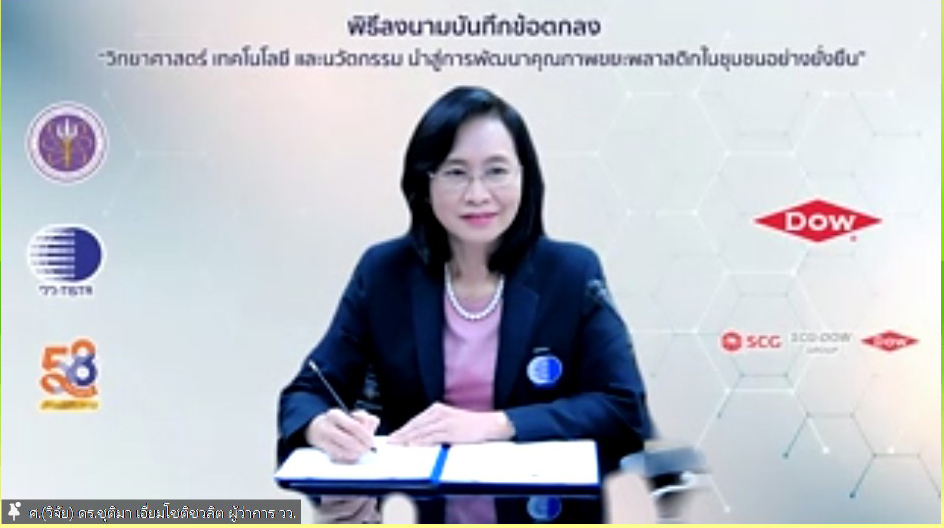 ศ.(วิจัย) ดร.ชุติมา เอี่ยมโชติชวลิต ผู้ว่าการสถาบันวิจัยวิทยาศาสตร์และเทคโนโลยีแห่งประเทศไทย (วว.) กระทรวงการอุดมศึกษา วิทยาศาสตร์ วิจัยและนวัตกรรม(อว.) กล่าวว่า วว. ได้ร่วมมือกับ กลุ่มบริษัท ดาว ประเทศไทย (Dow) ภายใต้โครงการ “วิทยาศาสตร์ เทคโนโลยี และนวัตกรรม นำสู่การพัฒนาคุณภาพขยะพลาสติกในชุมชนอย่างยั่งยืน” มีระยะเวลาความร่วมมือ 3 ปี ผ่านการดำเนินงาน 5 กิจกรรมหลัก ประกอบด้วย 1) ยกระดับศูนย์คัดแยกพลาสติกใช้แล้วเพื่อพัฒนาร้านรับซื้อของเก่าด้วยชุมชน โดยเน้นการจัดการพลาสติกใช้แล้ว รวมถึง เทคโนโลยีการแปรรูปขยะเศษอาหารและของเหลือทิ้งภาคการเกษตร โดยจะนำร่องที่จังหวัดระยอง 2) สร้างมาตรฐานพลาสติกรีไซเคิลโดยวิธีการและเครื่องมือ เพื่อตรวจสอบและตรวจวัดคุณภาพพลาสติก เช่น การตรวจสอบความหนาแน่น / วิธีตรวจวัดโดยชุมชน 3) พัฒนาหลักสูตรด้าน “การจัดการขยะให้เป็นศูนย์” เน้นการจัดการองค์ความรู้ ด้านการจัดการขยะด้วยหลักการเศรษฐกิจหมุนเวียน 4) การใช้เครื่องมือ online เน้นการพัฒนาแอพพลิเคชั่น เพื่อส่งเสริมการจัดการขยะที่เชื่อมต่อระหว่างชุมชนและผู้ประกอบการที่มีความพร้อมอย่างเป็นรูปธรรม และ 5) ถอดบทเรียนความสำเร็จการจัดการขยะชุมชนที่สำเร็จ เพื่อทำเป็นคู่มือสำหรับนำไปขยายผลในชุมชนอื่นๆต่อไป